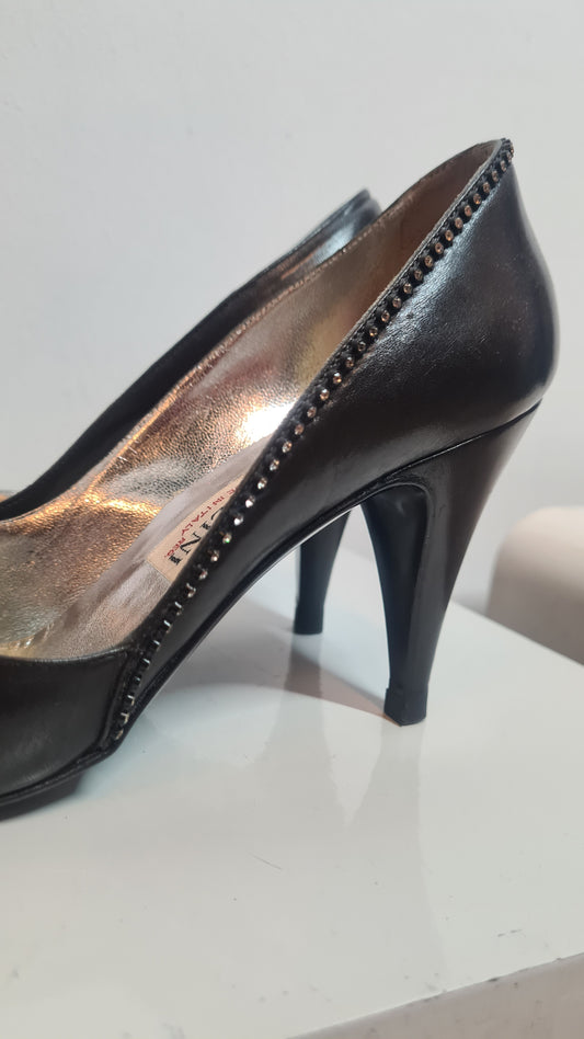 Pollini pumps zwart leer met diamantjes randje | 37